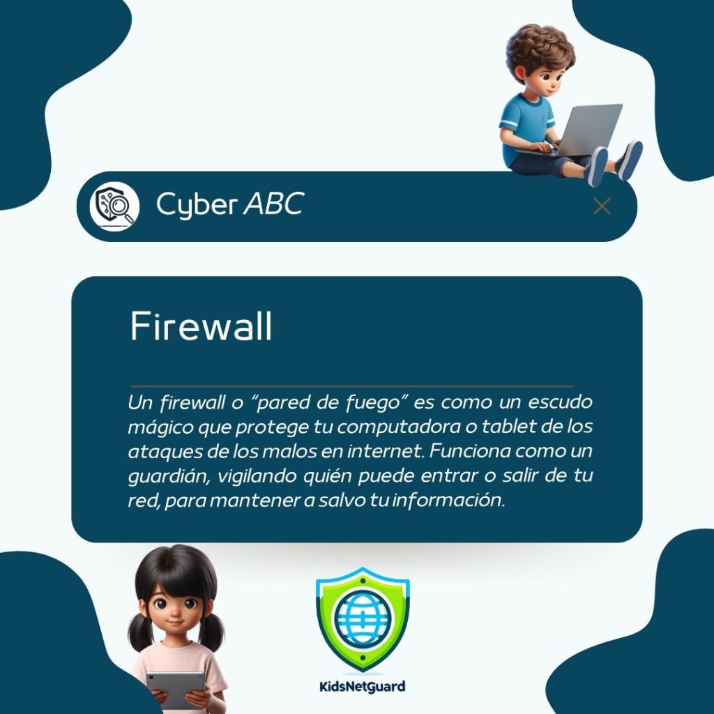Explica a niñas y niños que el firewall es como una protección invisible que cuida sus dispositivos. Enseñarles a no aceptar accesos desconocidos refuerza su seguridad digital.